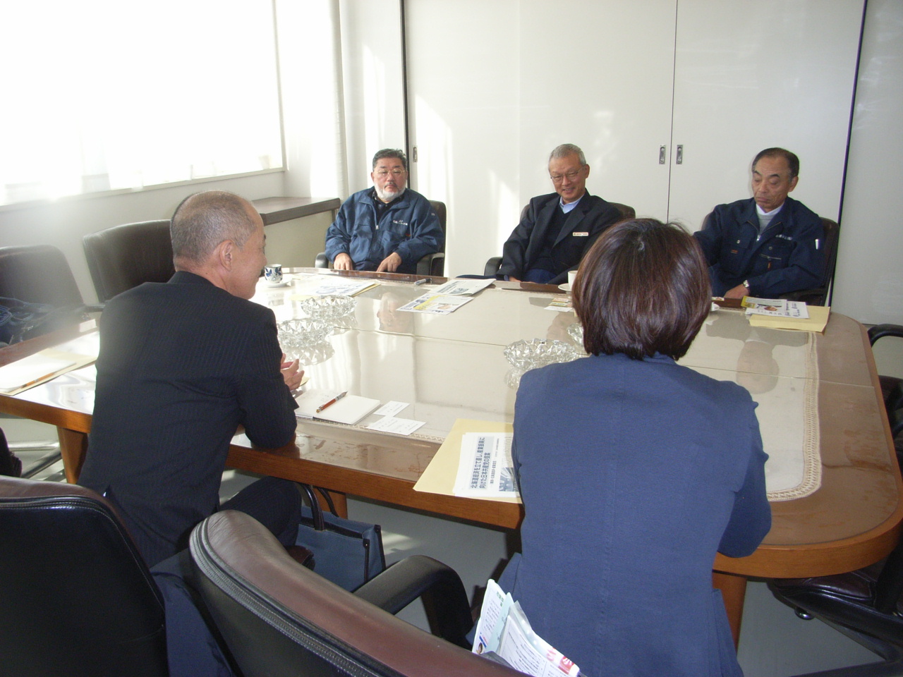 懇談に応じていただいたのは、理事長、副理事長、専務理事の御三方でした。小形市議より役員のみなさんに懇談の主旨を伝えてもらい懇談に入り1時間(もっと懇談したかったのですが次の予定があり)政治の問題から青年論や子育てについて、企業内努力の話しや水産物をとりまく状況など多岐にわたって懇談をすることができました。