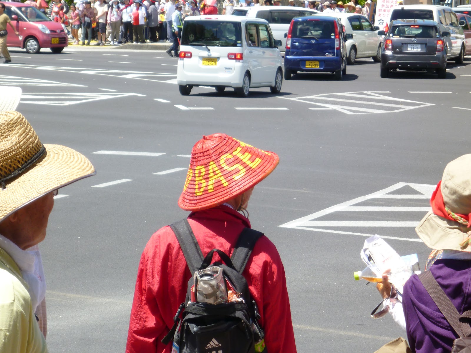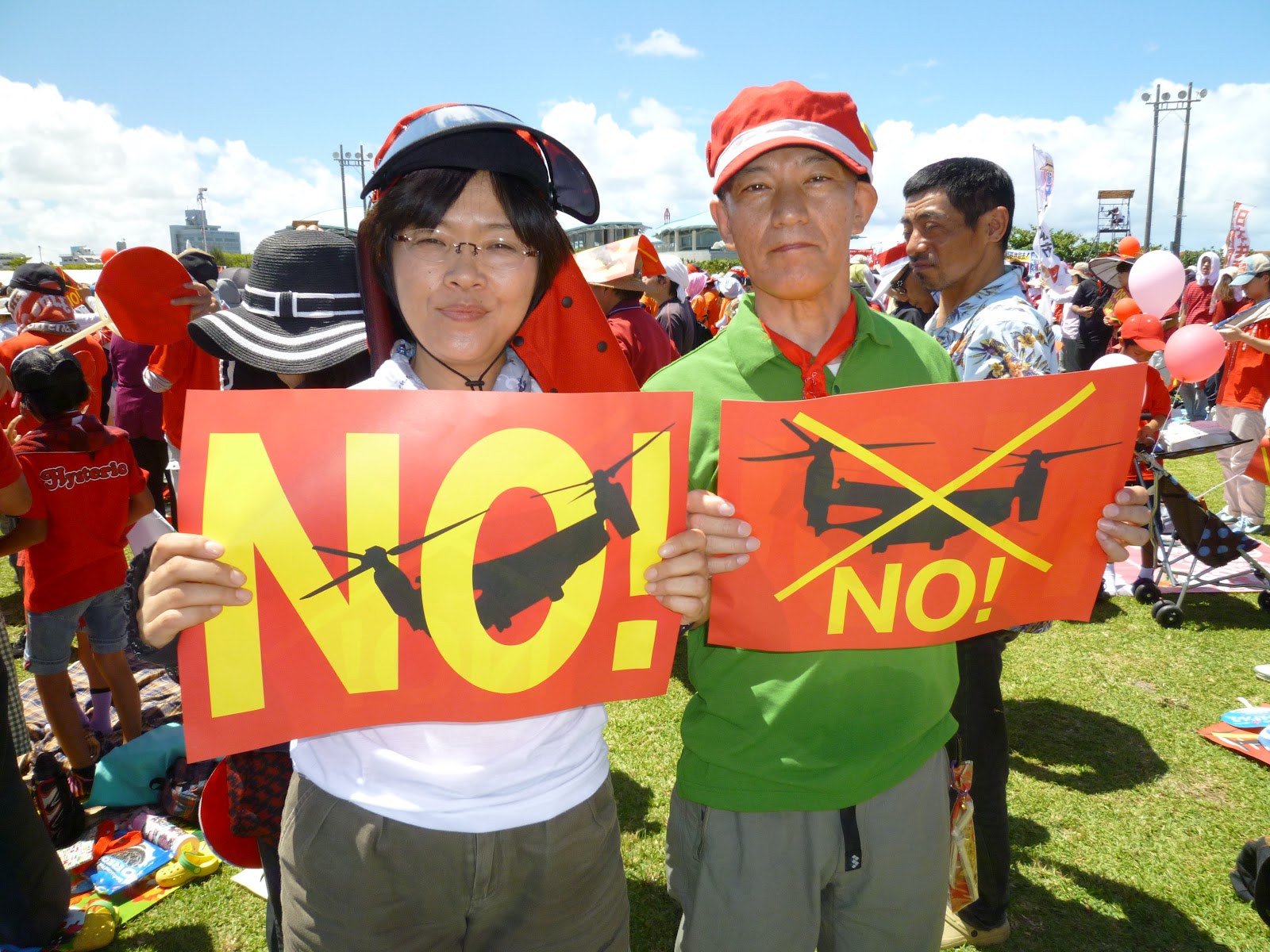 この暑さ、こどもに負けてなるものかと最後は意地で大会成功に向けて、県民のなさんと心をひとつにして日本にオスプレイはいらないとプラカードを掲げました。